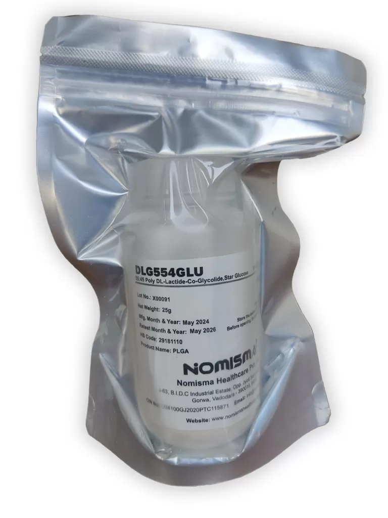 DLG554Glu is Pharma / Medical Grade branched copolymer made by ring-opening polymerisation of DL-lactide and Glycolide in a 55:45 molar ratio and with an inherent viscosity an inherent viscosity ranging from 0.45 dl/g to 0.60 dl/g.