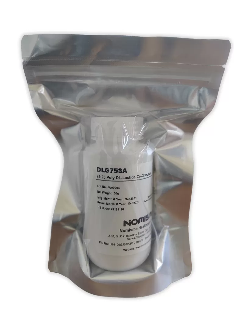 DLG753A is an acid-terminated Pharma / Medical Grade linear co-polymer made by ring-opening polymerisation of DL-lactide and Glycolide in a 75:25 molar ratio and with an inherent viscosity between 0.32 dl/g to 0.44 dl/g.